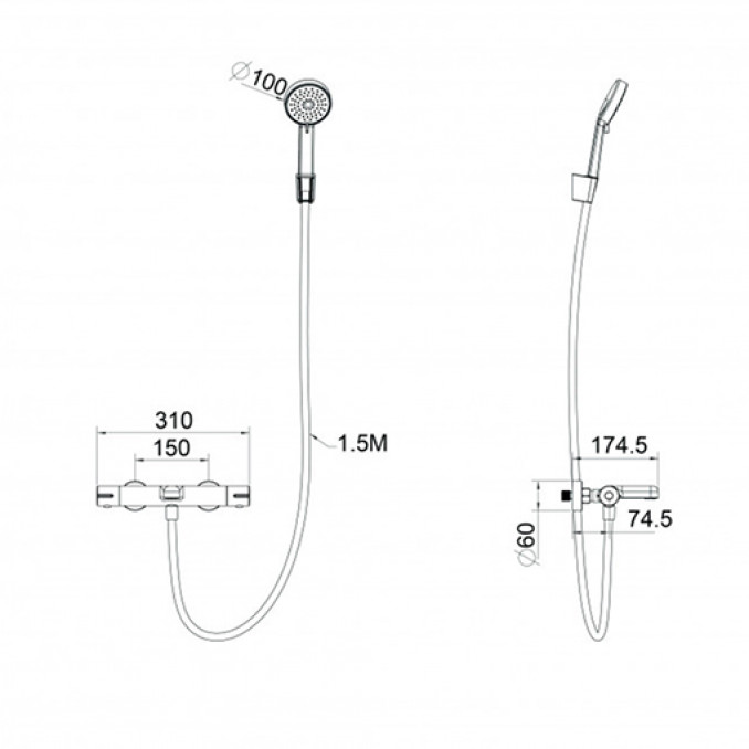 Termostatska baterija za kadu COPEN CoolTouch sa tuš setom mat crna